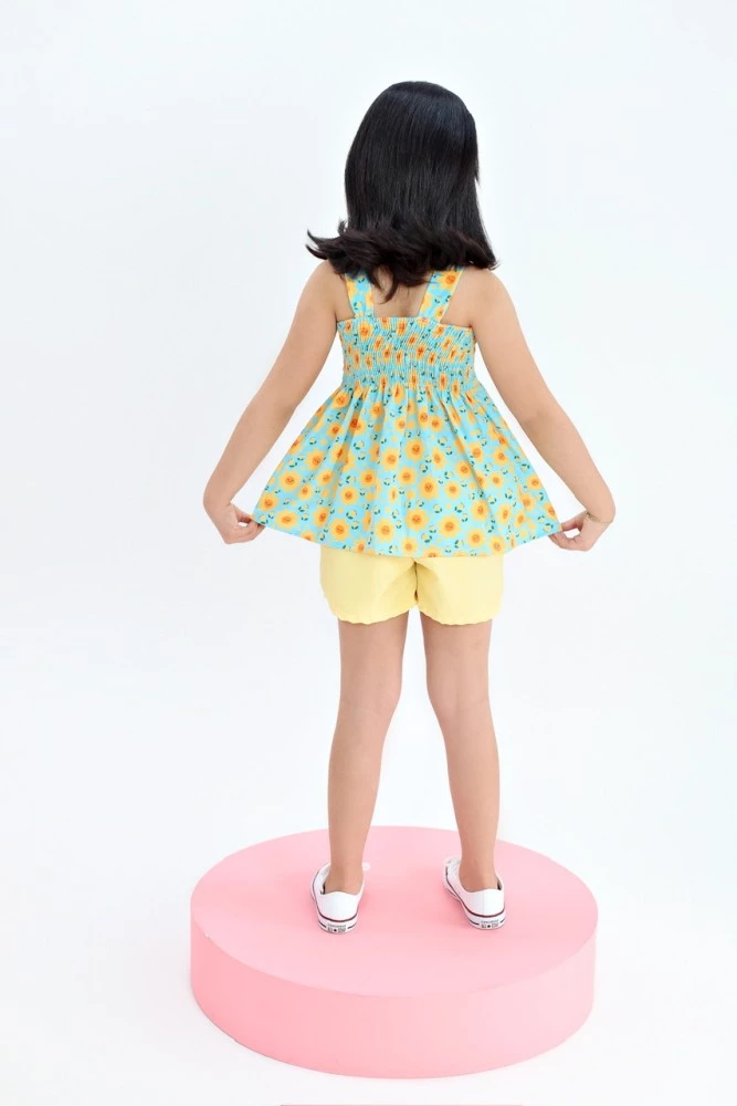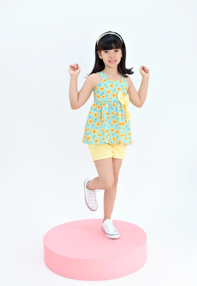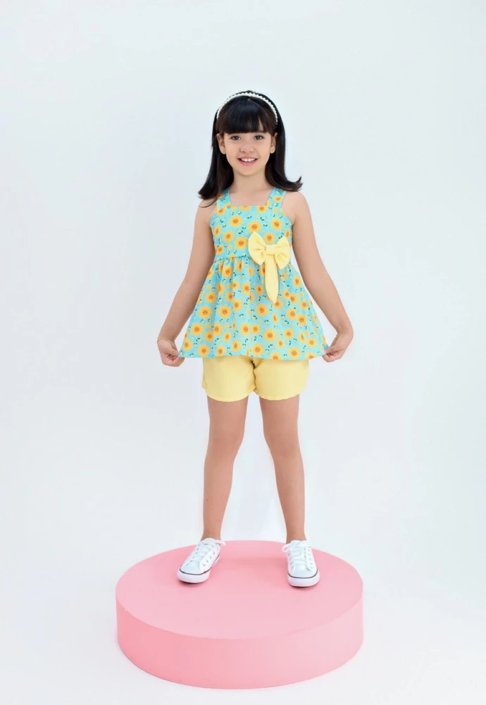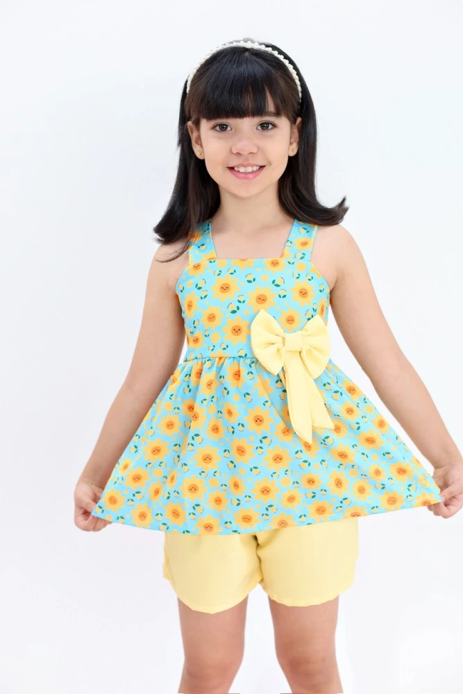A blusinha conta com alças largas, que oferecem mais segurança e conforto, além do detalhe encantador do laço com pala, que traz ainda mais charme para a peça. O short possui lastex na cintura, garantindo um caimento perfeito e liberdade nos movimentos, deixando sua pequena à vontade para brincar e se divertir.
