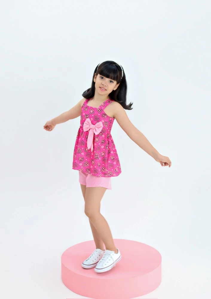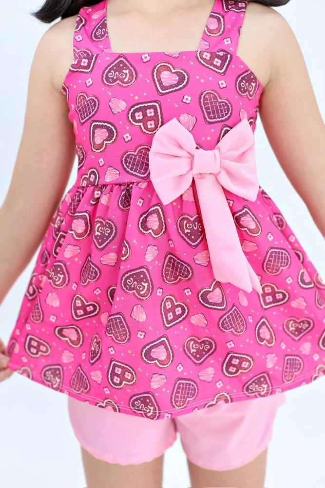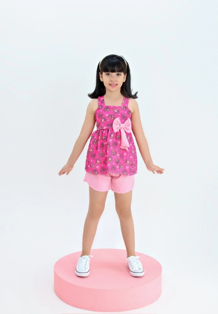 A blusinha conta com alças largas, que oferecem mais segurança e conforto, além do detalhe encantador do laço com pala, que traz ainda mais charme para a peça. O short possui lastex na cintura, garantindo um caimento perfeito e liberdade nos movimentos, deixando sua pequena à vontade para brincar e se divertir.